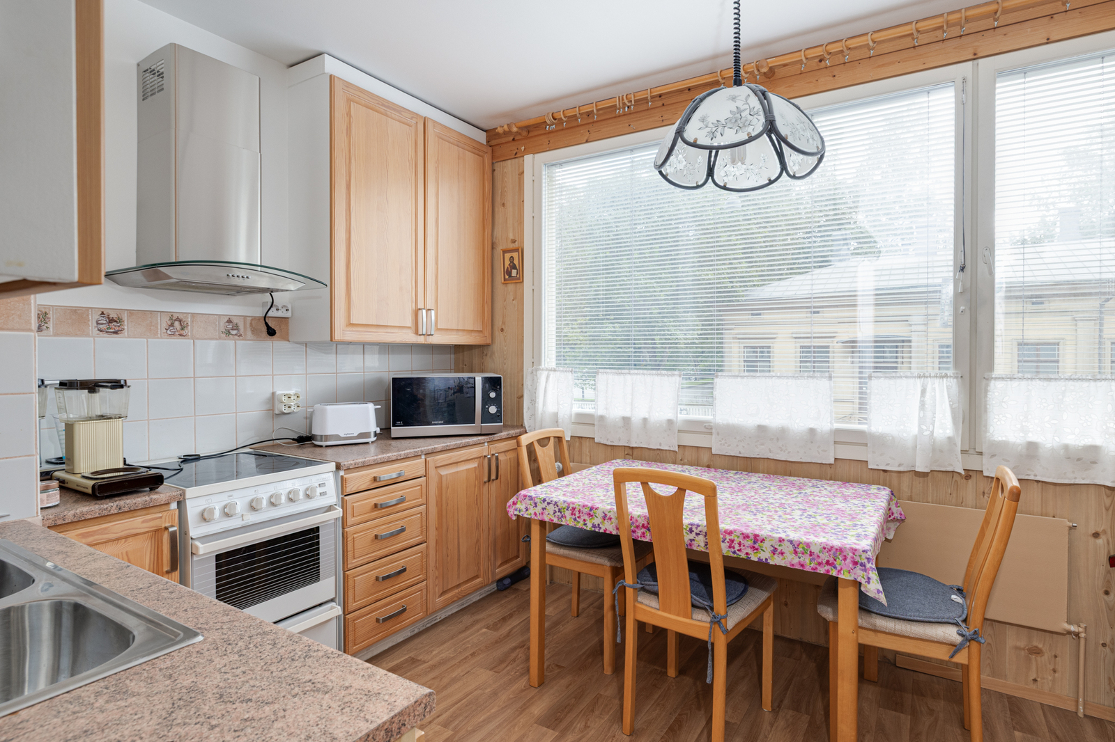 Olohuone: | Kulku parvekkeelle Seinät: lasikuitutapetti Lattia: parketti |