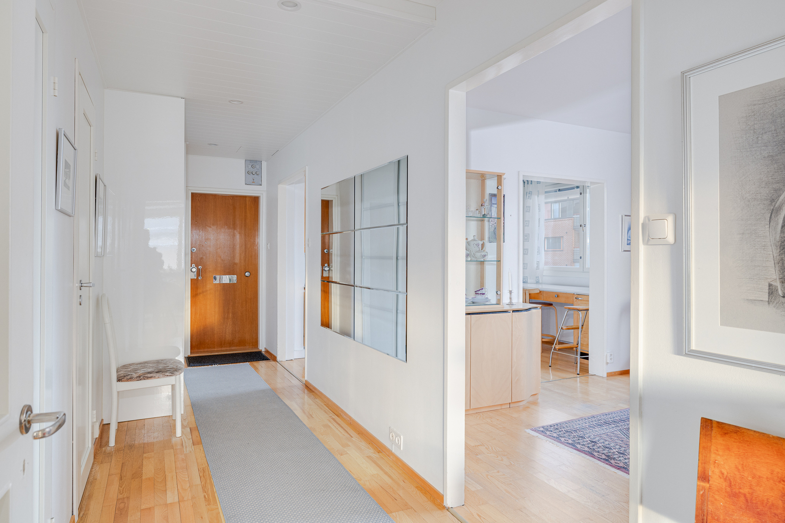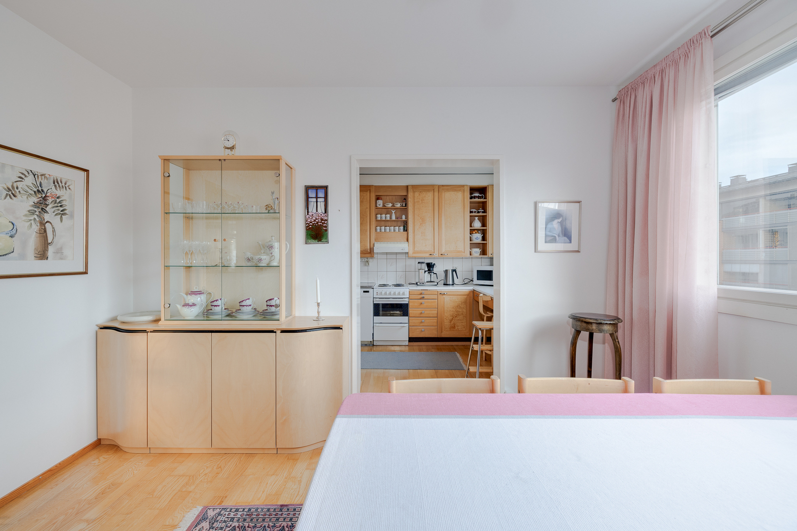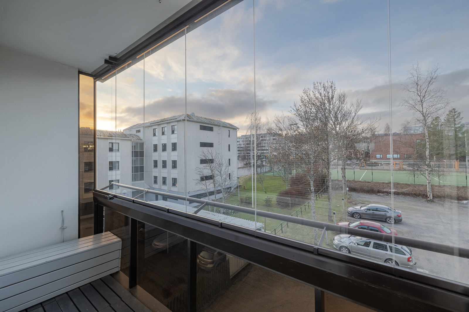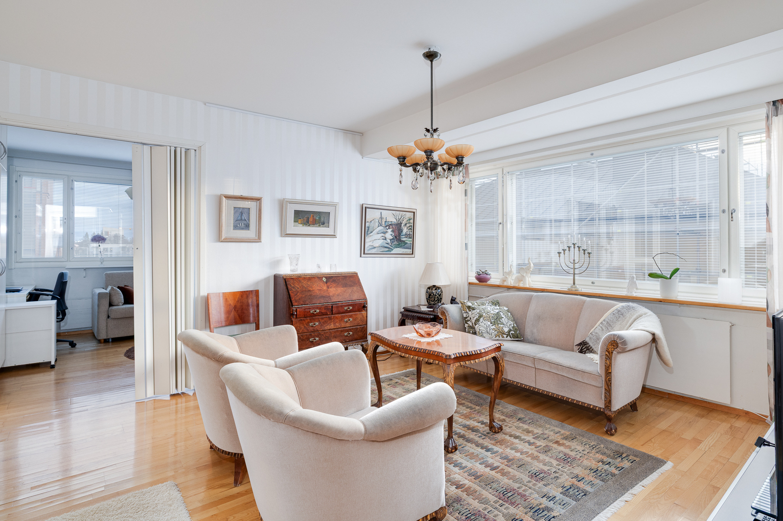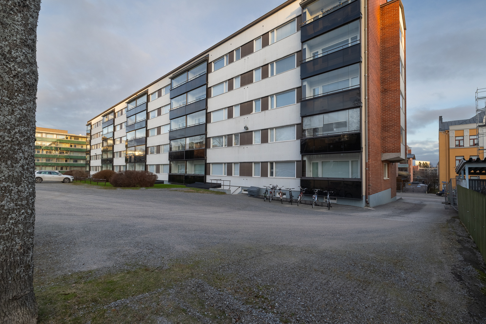 Valoisa päätyasunto hissitalon kolmannessa kerroksessa ydinkeskustassa Tervetuloa tutustumaan tähän valoisaan ja viihtyisään päätyasuntoon, joka sijaitsee hissillisen talon kolmannessa kerroksessa, aivan ydinkeskustan palvelujen äärellä. Hyvin hoidettu taloyhtiö ja erinomainen sijainti tekevät tästä kodista houkuttelevan vaihtoehdon monenlaisiin elämäntilanteisiin. Asunto on kooltaan 86,5 m² ja siinä on neljä huonetta, mutta pohjaratkaisu poikkeaa mukavasti perinteisestä. Tällä hetkellä koti toimii erityisen hyvin avarana ja toimivana isona kolmiona, sillä keittiön vieressä sijaitseva huone on otettu ruokailutilakäyttöön. Tarvittaessa asunnon voi kuitenkin helposti muuttaa takaisin selkeäksi neljän huoneen kodiksi. Olohuone sijaitsee asunnon keskellä mutta päätypaikalla, mikä luo heti sisään tullessa avaran ja kutsuvan vaikutelman. Leveät ikkunat avautuvat etelän suuntaan ja päätyasunnolle tyypillisesti luonnonvaloa tulvii sisään peräti kolmesta ilmansuunnasta. Olohuoneen molemmin puolin sijaitsevat kaksi tilavaa makuuhuonetta. Länteen, Övningsskolanin suuntaan avautuvan makuuhuoneen yhteydessä on lasitettu parveke, joka tarjoaa miellyttävän lisätilan pitkälle syksyyn ja jo aikaisin keväällä. Kylpyhuone on raikkaan valkoinen ja remontoitu käyttövesiputkien uusimisen yhteydessä vuosina 2015–2016. Myyjän käytössä olevan autopaikan (tolppapaikka) saisi 5.1.2026 tilanteen mukaan siirrettyä ostajalle. Tämä koti hurmaa valoisuudellaan ja toimivalla pohjaratkaisullaan – tervetuloa aistimaan viihtyisä tunnelma paikan päälle. Varaa oma esittelyaikasi tai tule tutustumaan yleisnäyttöön! ********************************* Ljus hörnlägenhet med hiss i ett välskött bostadsbolag mitt i stadskärnan Denna trivsamma bostad om 86,5 m² är belägen på tredje våningen i ett hus med hiss, mitt i centrum. Lägenheten har fyra rum och kök, men planlösningen avviker på ett charmigt sätt från den traditionella modellen. I dagsläget fungerar bostaden utmärkt som en rymlig trea, där rummet intill köket används som matplats. Vid behov kan planlösningen enkelt återställas till en fullt fungerande fyrarummare. Vardagsrummet är placerat centralt i bostaden men i hörnläge, vilket skapar en härlig känsla redan när man kliver in – blicken dras direkt mot det ljusa och inbjudande vardagsrummet. De breda fönstren vetter mot söder och tack vare hörnläget flödar dagsljuset in från tre väderstreck. På vardera sidan om vardagsrummet finns två rymliga sovrum. Det västervända sovrummet, med utsikt mot Övningsskolan, har dessutom utgång till en inglasad balkong – en perfekt plats att njuta av eftermiddags- och kvällssolen. Badrummet är fräscht, helkaklat i vitt och renoverades i samband med förnyelsen av vattenledningarna åren 2015–2016. Även bilplatsen, som säljaren har i sitt förfogande, kunde transporteras till köparen enligt situationen per 5.1.2026. Varmt välkommen att uppleva den hemtrevliga atmosfären på plats – boka en privat visning eller besök någon av våra öppna visningar.