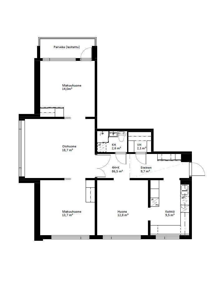 kerrostalo, 4H+K+PARV., 86.5 m²