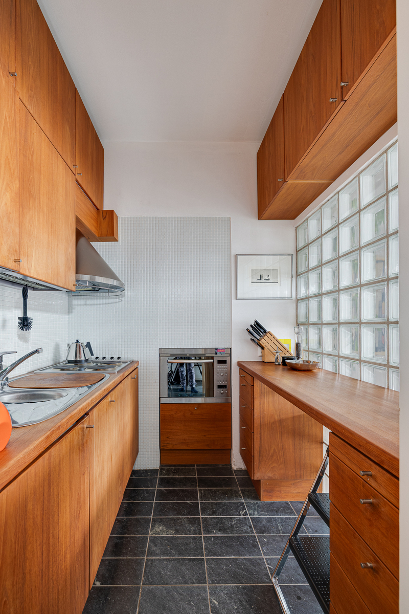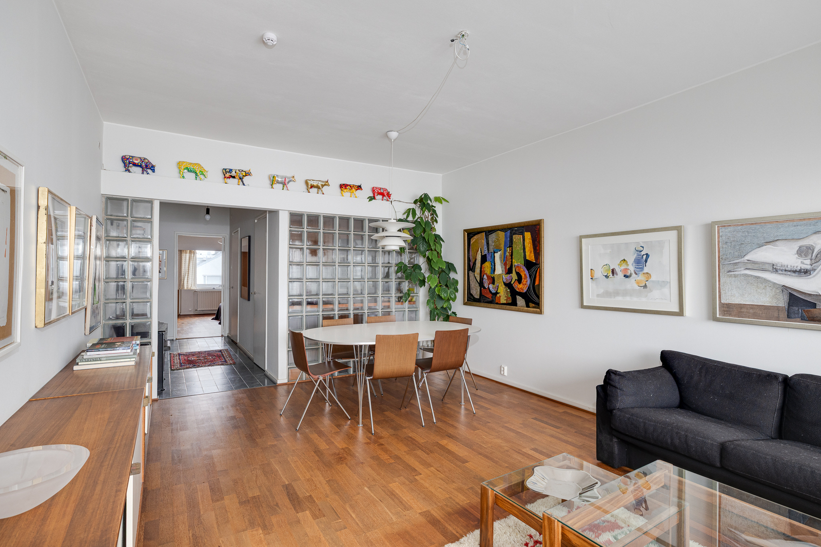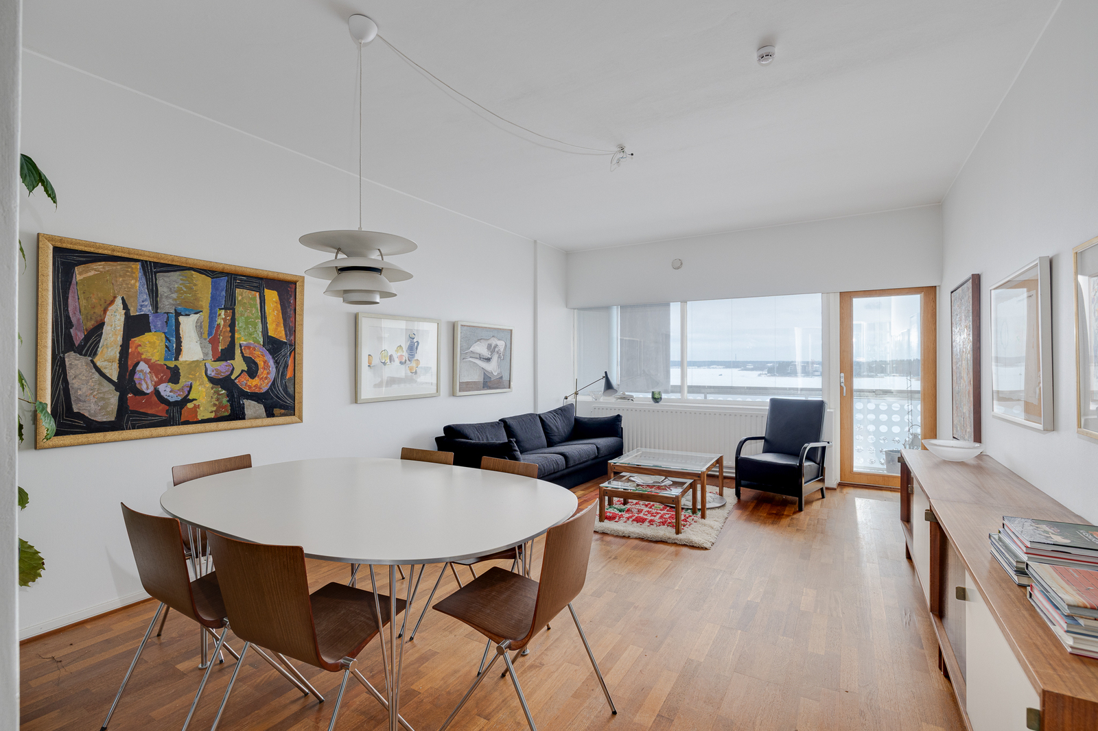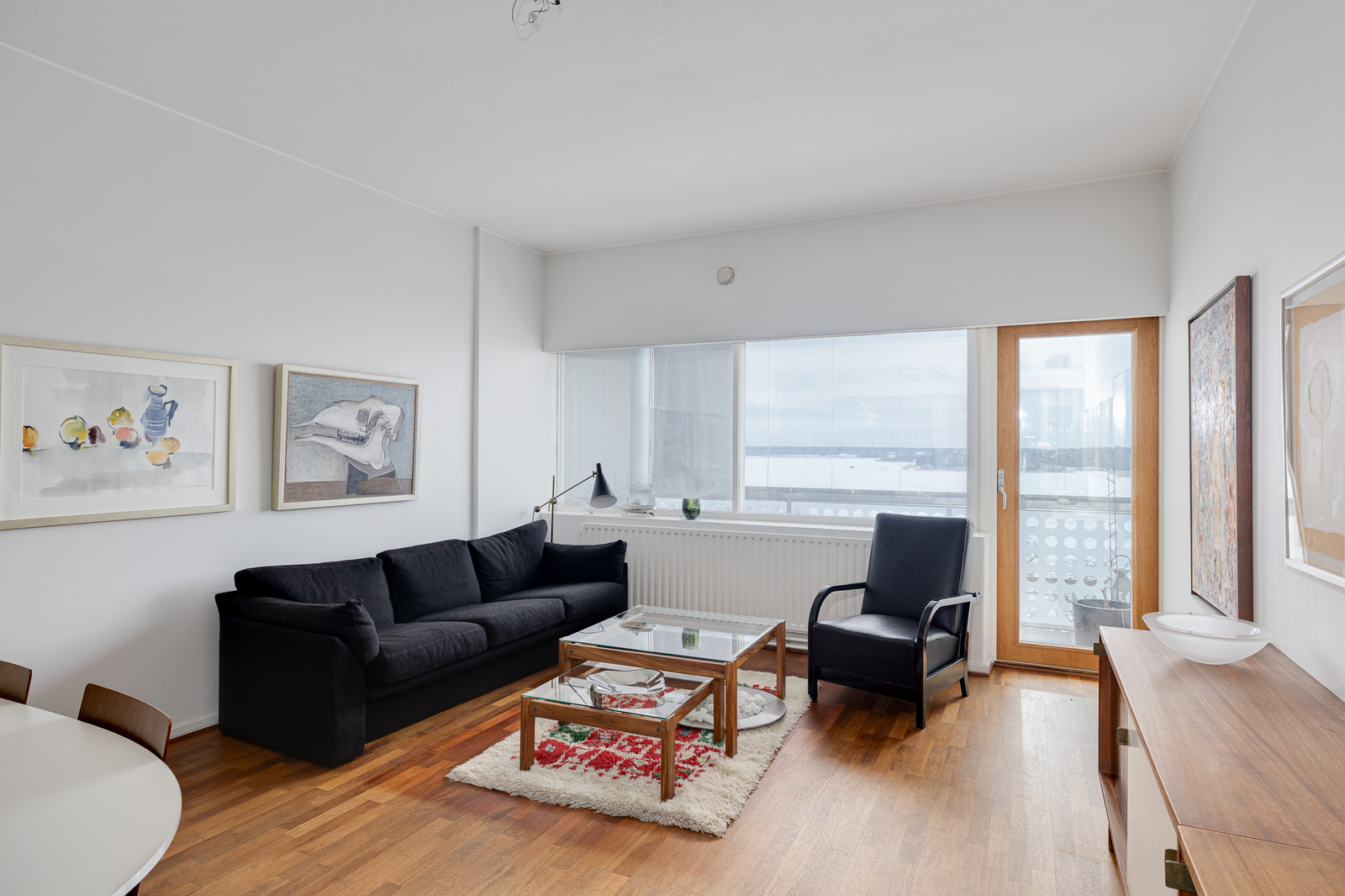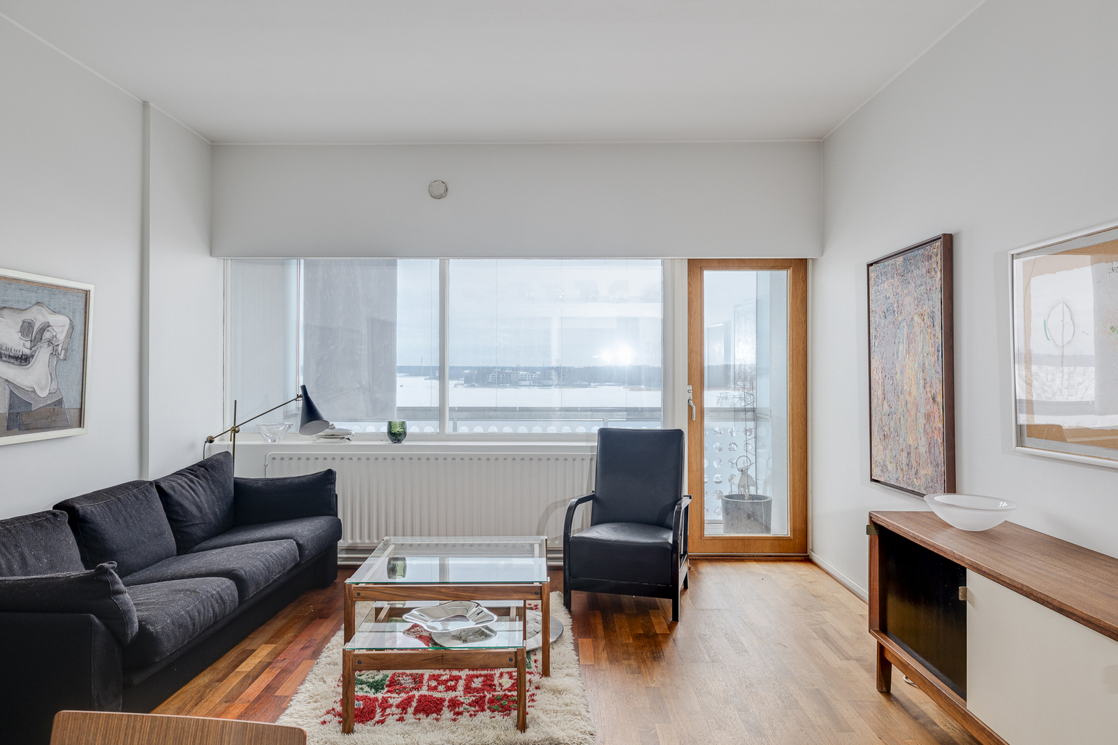 Rantakadun tyylikäs funkkishelmi upein merinäkymin – Viljo Revellin suunnittelema, v. 1952 valmistunut kerrostalo Tämä asunto on remontoitu kunnioittaen rakennusvuoden funkkistyyliä. Aitoa teakia olevat vaatekaapit ja keittiökaapistot tuovat lämpöä ja ajattomuutta tilaan. Käytännöllinen lasitiiliseinä erottaa olohuoneen keittokomerosta ja eteisestä, mutta päästää luonnonvalon kauniisti läpi. 60 m²:n huoneistossa on tilavat huoneet ja parvekkeet molemmin puolin. Julkisivuremontin yhteydessä lännen puolen parveketta syvennettiin ja molemmissa parvekkeissa on lasitus ja lasikaiteet, jolloin upeat merinäkymät pääsevät täysin oikeuksiinsa. Kylpyhuone on yllättävän tilava rakennusvuoteen nähden. Kylpyhuoneremontin yhteydessä sinne on asennettu iso kylpyamme ja kokonaisuus säilyttää tyylinsä uskollisena funkkistyylille. Keskustan autopaikkapula ei tässä kohteessa ole ongelma. Taloyhtiössä autopaikat muutettiin osakkeiksi ja myyjällä on tarjolla tolppapaikkaosake hintaan 8 000 €. *********************************** Elegant funkislägenhet på Strandgatan med fantastisk havsutsikt – byggd 1952 av Viljo Revell Denna lägenhet är renoverad med respekt för byggårens funkisstil. Garderober och köksskåp i äkta teak ger värme och tidlös elegans. En praktisk glasblocksvägg avgränsar vardagsrummet från kokvrån och hallen, men släpper ändå in rikligt med naturligt ljus. Med sina 60 m² erbjuder lägenheten rymliga rum och balkonger på båda sidor. Vid fasadrenoveringen fördjupades västbalkongen mot havet och båda balkongerna har glas och glasräcken, vilket framhäver den fantastiska havsutsikten. Badrummet är ovanligt rymligt med tanke på byggåret. Vid badrumsrenoveringen installerades ett stort badkar, och stilen följer troget funkisestetiken. Bristen på parkeringsplatser i centrum är inget problem här. I bostadsbolaget har parkeringsplatserna omvandlats till aktier och säljaren erbjuder en stolplatsaktie till priset av 8 000 €.