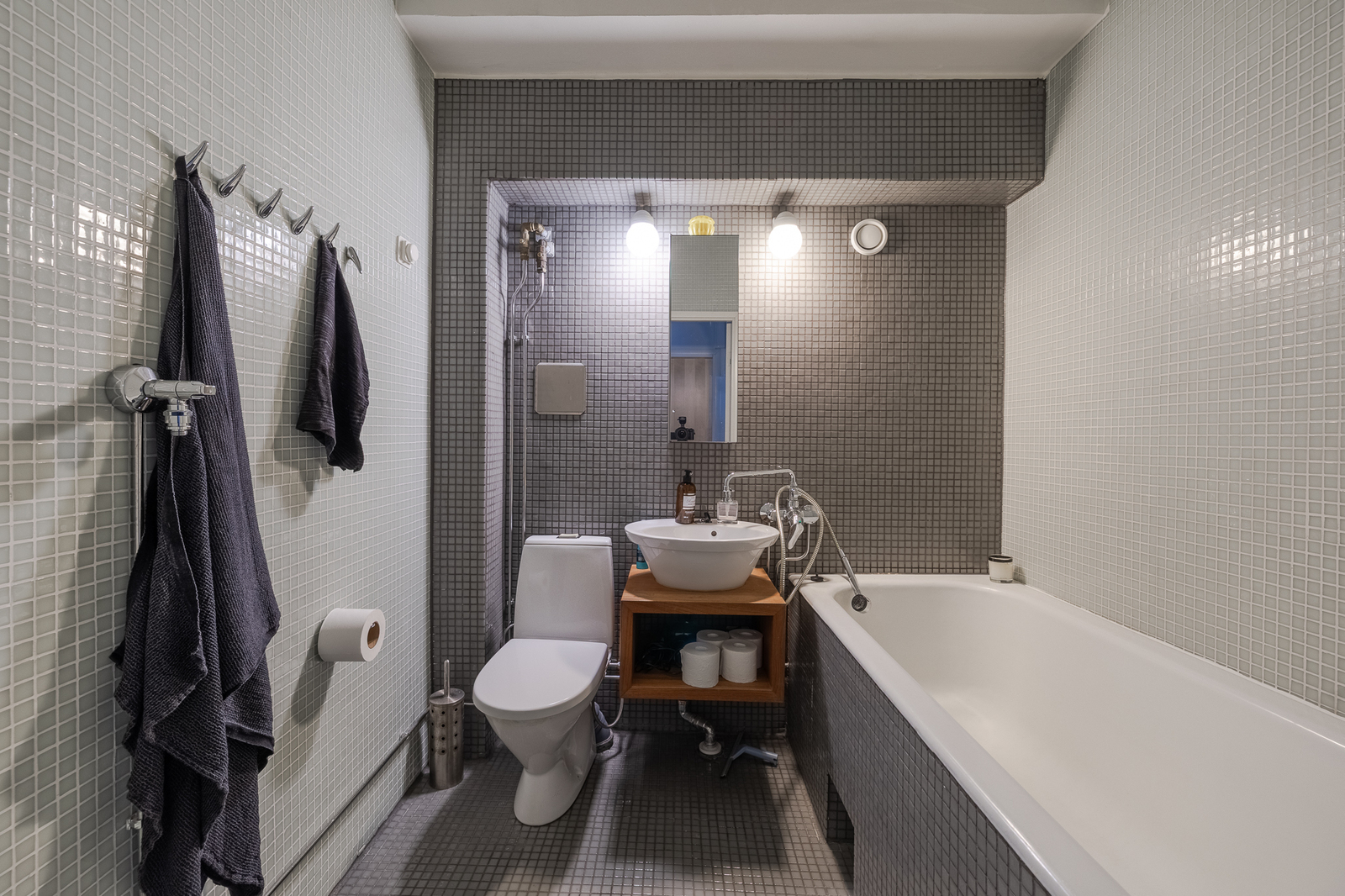 Pesutilat: Kylpyhuone remontoitu putkiremontin yhteydessä 2005 Varustus: kylpyamme, pesukoneliitäntä, wc-istuin, peilikaappi Seinät: kaakeli Lattia: laatta