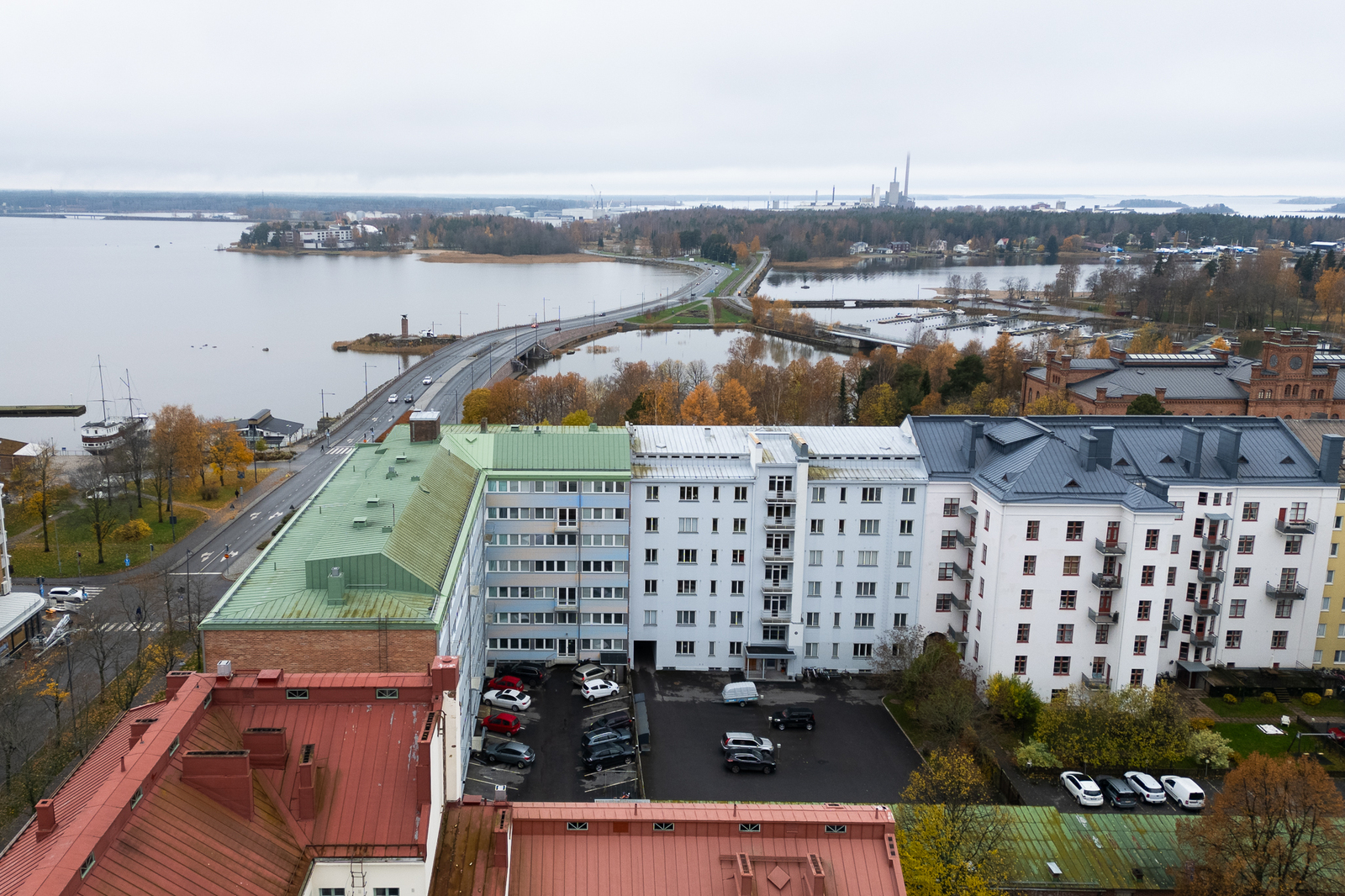 Hyvä remonttikohde merellisissä maisemissa – tilava päätykaksio keskustassa Tässä on loistava mahdollisuus remontoida unelmiesi koti tai sijoitusasunto kauniissa merellisessä ympäristössä! Tämä 60 m²:n päätyasunto sijaitsee Asunto Oy Juhonnurkan 4. kerroksessa Vaasanpuistikon puolella. Lasitetulta parvekkeelta avautuvat viistosti viehättävät näkymät merelle ja Vaskiluodon sillalle sekä tietysti puistikolle. Arkkitehti Rewellin suunnittelema yhtiö on saanut viime vuonna perusteellisen julkisivusaneerauksen: ikkunat, parvekkeet, lasitukset ja eristykset on uusittu – ja tämän asunnon osalta lainaosuus on jo maksettu pois. Tee tästä tyylikäs kaupunkikoti itsellesi, viihtyisä vuokrakohde tai flippaa. Yhtiö on omalla tontilla, ja hoitovastike on maltillinen 3,90 €/m² (237,90 €/kk). Saunaosasto sijaitsee talon ullakkokerroksessa Rantakadun ja Vaasanpuistikon kulmassa – ja sieltä avautuvat upeat, lähes postikorttimaiset näkymät meren ylle ja Hovioikeuden puistoon. ************************************ Ett utmärkt renoveringsobjekt med havsutsikt – rymlig gaveltvåa i centrum Här finns en fantastisk möjlighet att skapa ditt drömhem eller en attraktiv investering i ett vackert, havsnära läge! Denna rymliga tvåa på 60 m² ligger i bostadsbolaget Asunto Oy Juhonnurkkas fjärde våning, på Vasaesplanadens sida. Från den inglasade balkongen har du trevliga vyer mot havet och Vasklotbron. Fastigheten, ritad av arkitekt Rewell, har nyligen genomgått en omfattande fasadrenovering där även fönster, balkonger, inglasningar och isolering förnyats – och låneandelen för denna lägenhet är redan betald. Renovera och skapa en stilfull stadsbostad för eget bruk, uthyrning eller vidareförsäljning. Bostadsbolaget står på egen tomt, vilket bidrar till en låg månadsavgift på endast 3,90 €/m² (237,90 €/månad). Husets bastuavdelning ligger högst upp i hörnet av Strandgatan och Vasaesplanaden – med en fantastisk utsikt över havet och Hovrättsparken.