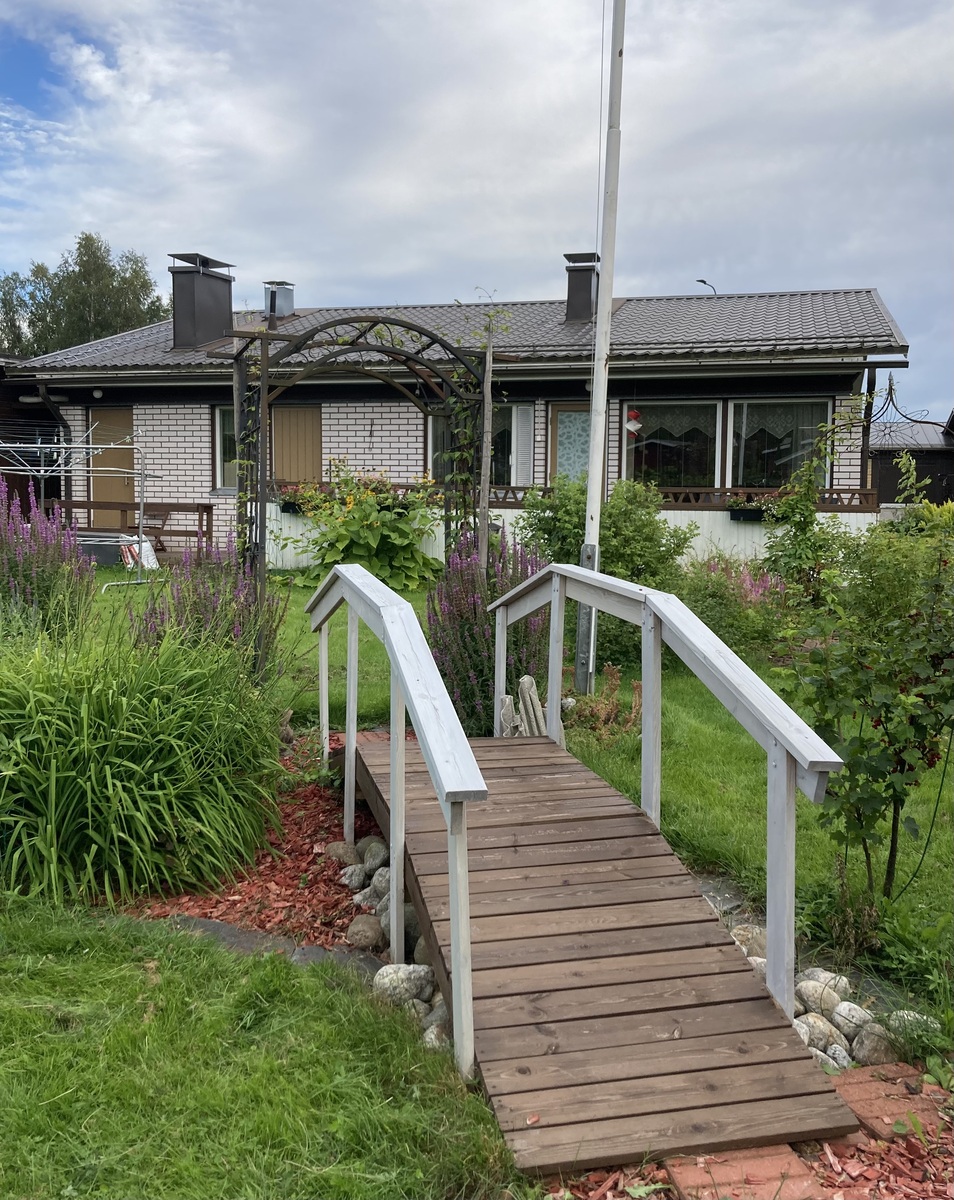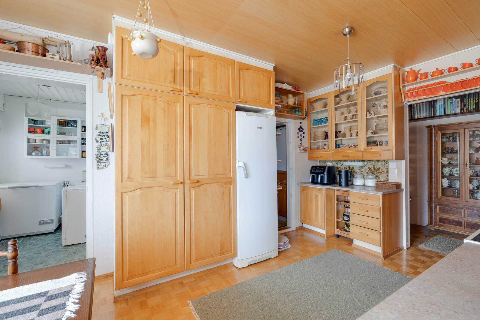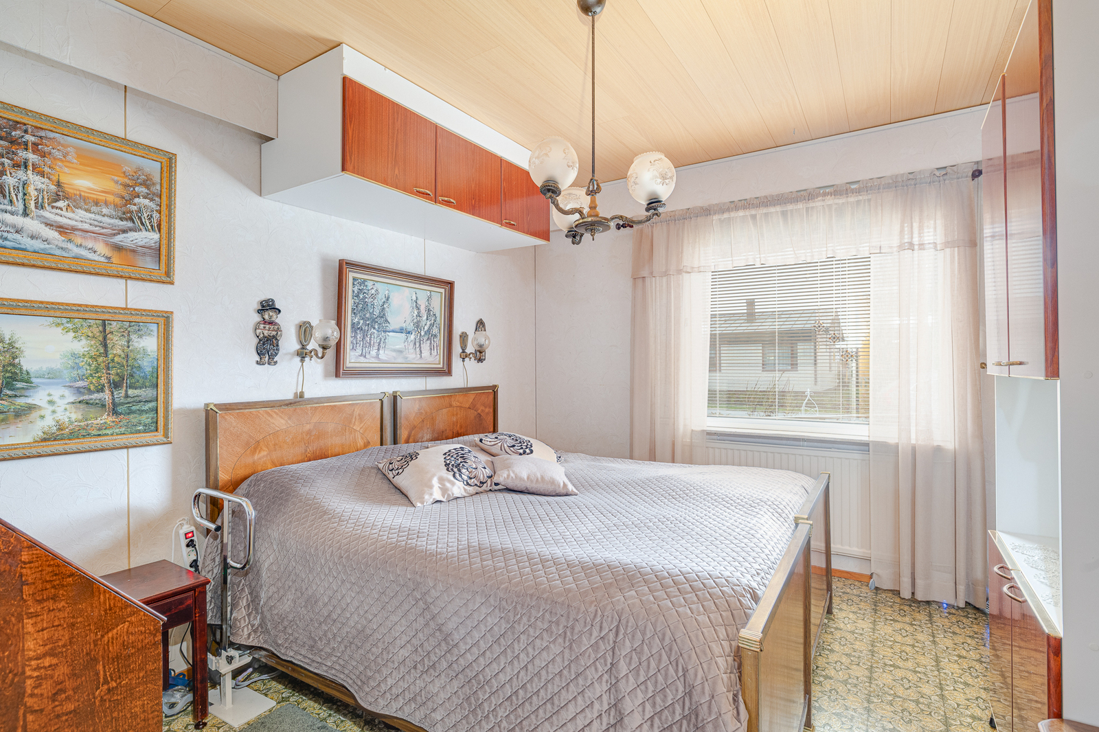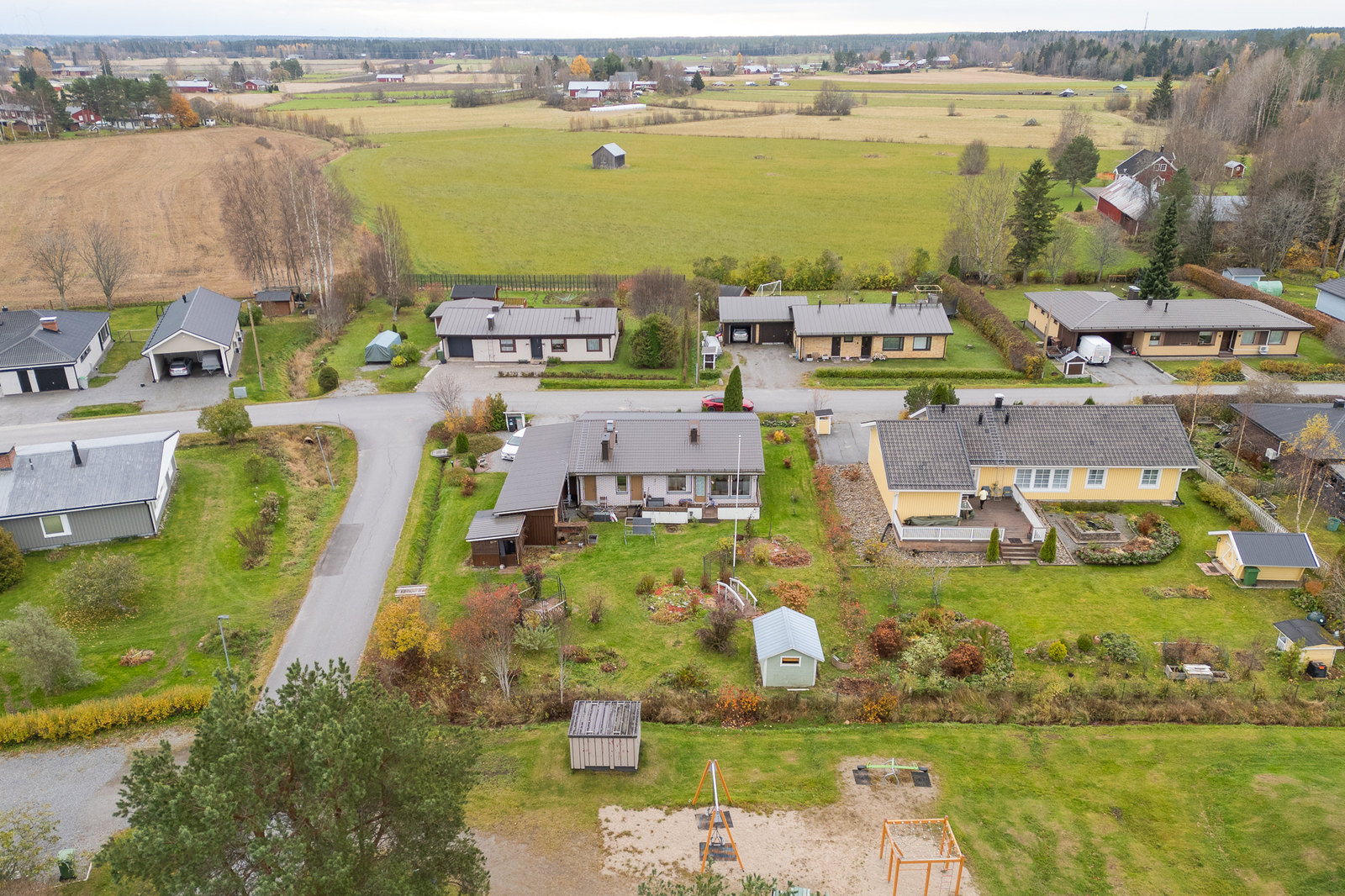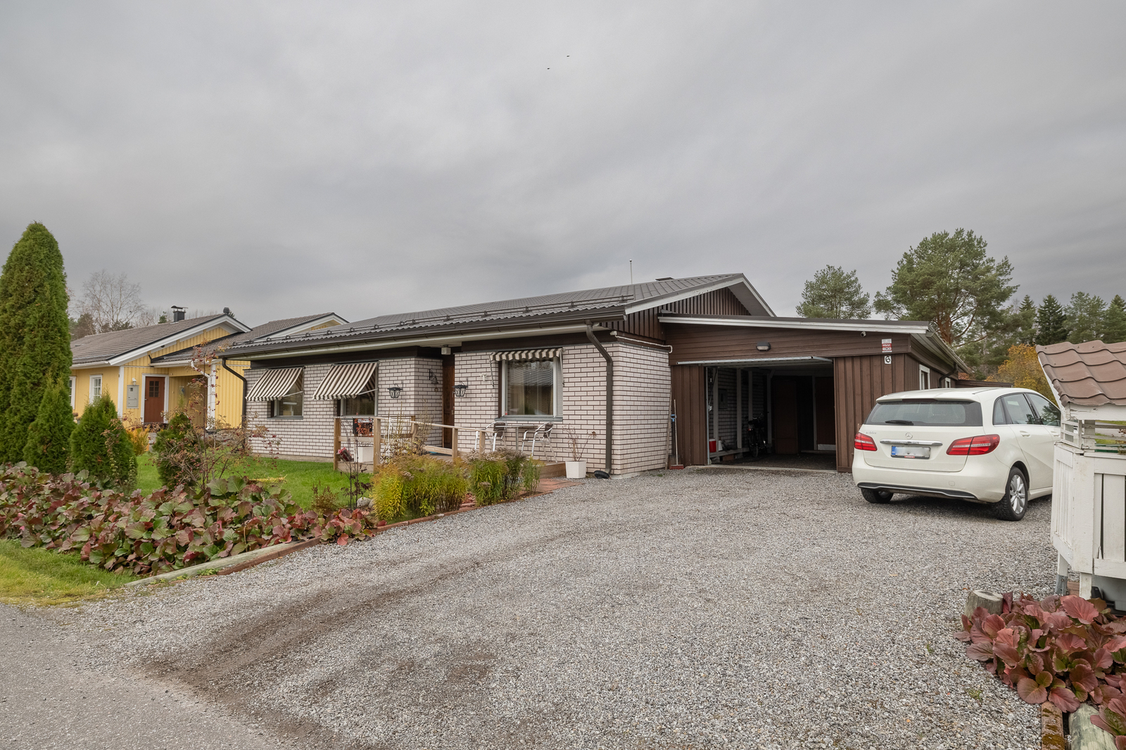 Kodikas ja lämminhenkinen omakotitalo, josta on pidetty hyvää huolta vuosien varrella. Alkuperäinen omistaja on asunut talossa alusta lähtien, mutta nyt on tullut aika siirtyä kevyempään asumiseen – sinun mahdollisuutesi tarttua tilaisuuteen! Tässä yhdessä tasossa olevassa kodissa on toimiva pohjaratkaisu: 4h + k + s + khh, yhteensä 119,5 m². Säilytystilat ovat kunnossa – entinen autotalli toimii nyt varastona ja öljysäiliöhuoneena, ja sen eteen on rakennettu kylmä autotalli. Kolme tilavaa makuuhuonetta tarjoavat riittävästi tilaa perheelle tai etätyöpisteelle. Olohuoneessa tunnelmaa luo kaunis takka. Keittiö sijaitsee olohuoneen vieressä ja tarjoaa runsaasti kaappitilaa sekä erillisen ruokakomeron. Terassille pääsee kätevästi sekä olohuoneesta että kodinhoitohuoneesta. Talossa on myös kaksi wc:tä – toinen kylpyhuoneessa ja toinen päämakuuhuoneen yhteydessä. Talo sijaitsee omalla, 1 014 m²:n tontilla, jota kehystää kaunis ja huolella hoidettu puutarha. Ensi keväänä ja kesänä on ilo seurata, mitä kaikkea puutarha tarjoaa – kukintaa, vehreyttä ja viihtyisyyttä. ************************************* Ett hemtrevligt och varmt egnahemshus som tagits väl om hand genom åren. Den ursprungliga ägaren har trivts här sedan starten – men nu är det dags att lämna plats för någon ny att skapa sitt hem. Detta enplanshus har en välplanerad layout: 4 rum + kök + bastu + grovkök, totalt 119,5 m². Det finns gott om förvaringsutrymme – det tidigare garaget används idag som förråd och oljetankrum, och framför det har man byggt ett kallgarage. Huset rymmer tre rymliga sovrum, perfekt för familjen eller för att skapa ett hemmakontor. I vardagsrummet sprider en vacker öppen spis en trivsam stämning. Köket ligger intill vardagsrummet och erbjuder gott om skåputrymme samt ett separat skafferi. Till terrassen kommer du både från vardagsrummet och från grovköket. Det finns två toaletter – en i badrummet och en smidigt placerad intill det största sovrummet. Den egna tomten är 1 014 m² stor. Den vårdade, grönskande trädgården som omger huset bjuder på blomsterprakt och lugn – det blir spännande att se vad våren och sommaren kommer att avslöja i denna vackra trädgård.