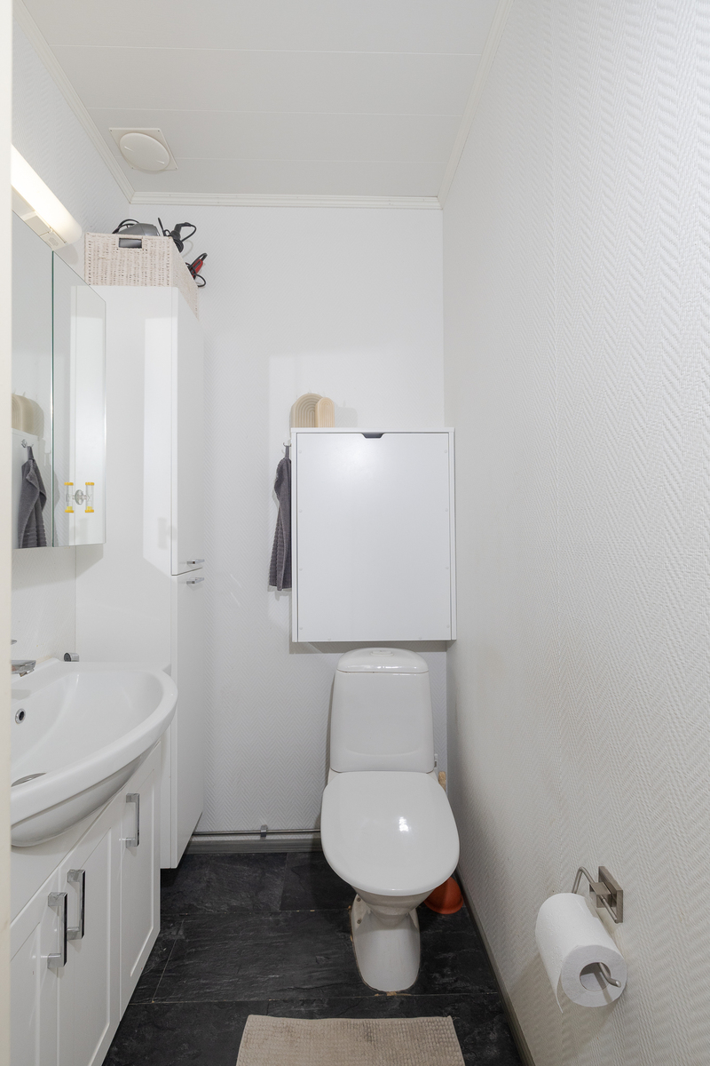 | Erillinen WC | Wc uusittu 2018. Varustus: peilikaappi, lattia laminaattia Varustus: Seinät: lasikuitutapetti Lattia: muu Lukumäärä: 1 |