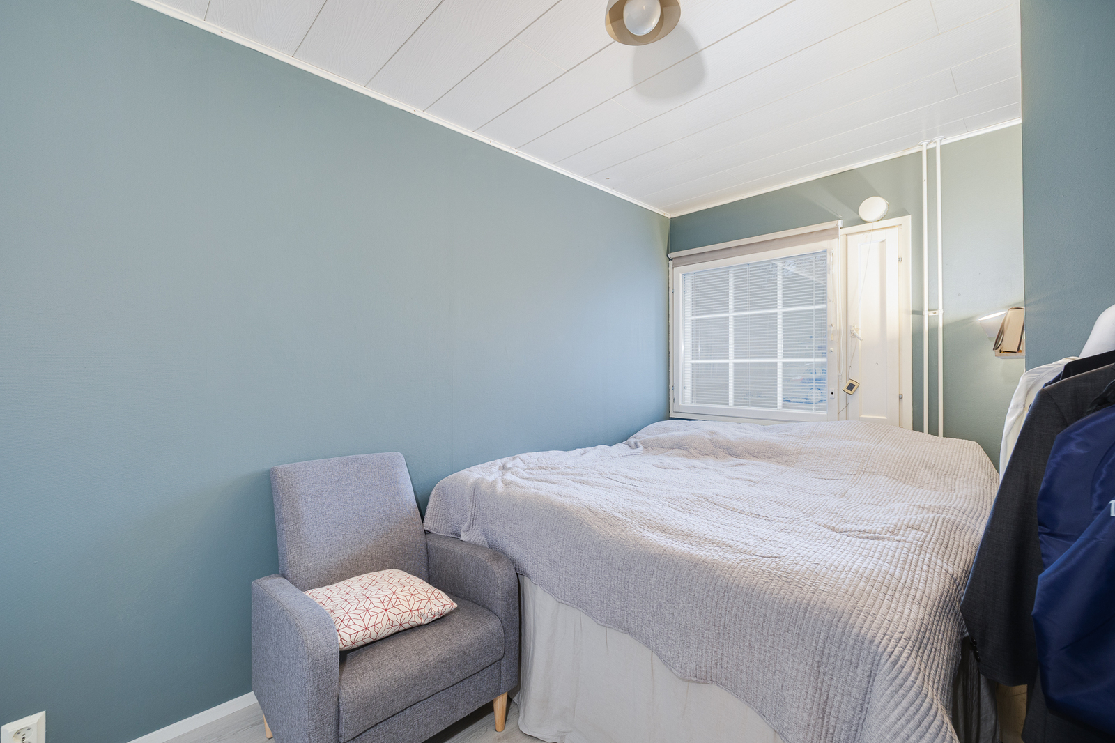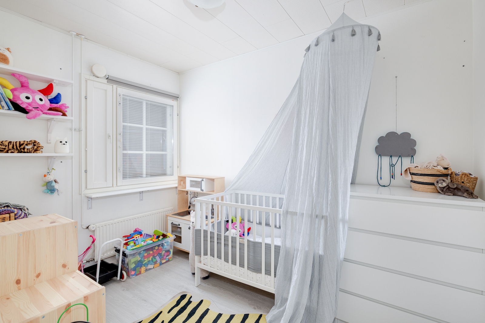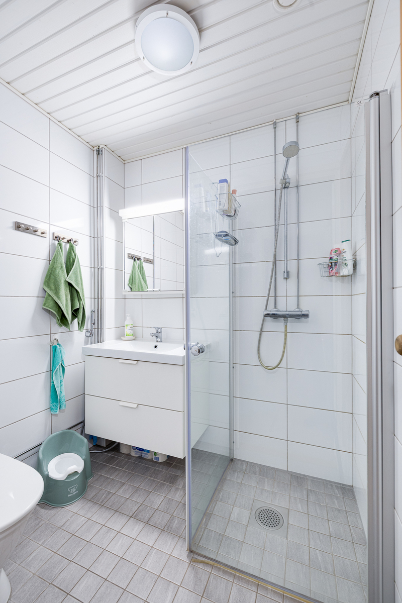 Den här lägenheten är mera än en traditionell trea. Rejält med mångsidigt tilläggsutymme finns på loftet. På loftet finns därtill ett stort, varmt förråd. Vardagsrummets höjd ger rymlig känsla och personlighet till lägenheten. Här finns även ett klädvårdsrum. Både vid entrèn och på gårdssidan finns trevliga glasverandor, som inte är medräknade i bostadsytan. Som pricken på i:et så är bolaget anslutet till fjärrvärme. Läget är också trevligt i början av Gerby och bolagets tomt gränsar till ett grönområde. Biltakplats ingår i priset och även en stolpplats kan fås för en till bil.