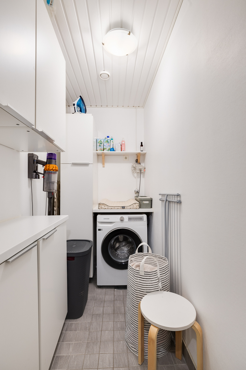 Hemvårdsrum: Utrustning: tvättmaskinsanslutning, golvvärme, tvättskåp. Golv: klinker