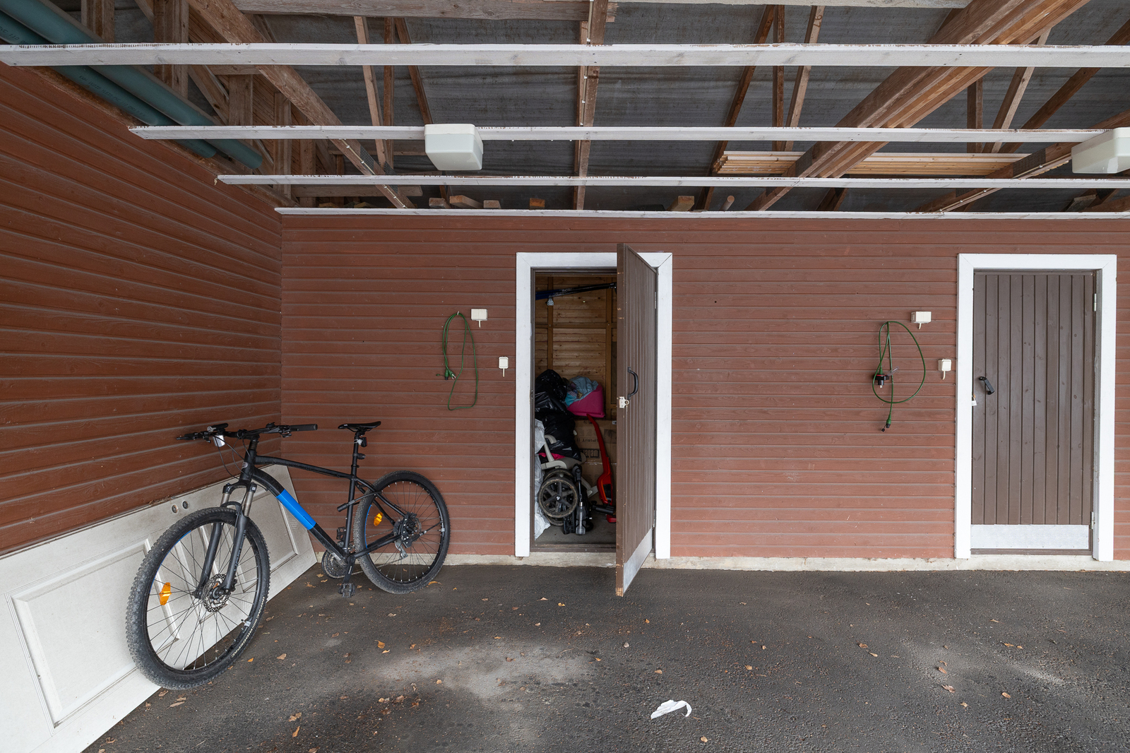 Förvaringsutrymmen: Ett skillt varmt förråd på loftet. Uteförråd i biltaket.